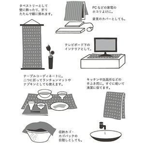 Tenugui are durable, absorbent, and dry quickly, making them difficult to tear even when squeezed tightly, so they can be used in a variety of indoor and outdoor situations.